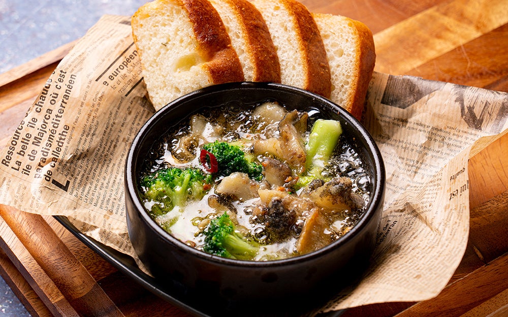- 北海道産つぶ貝のアヒージョ
