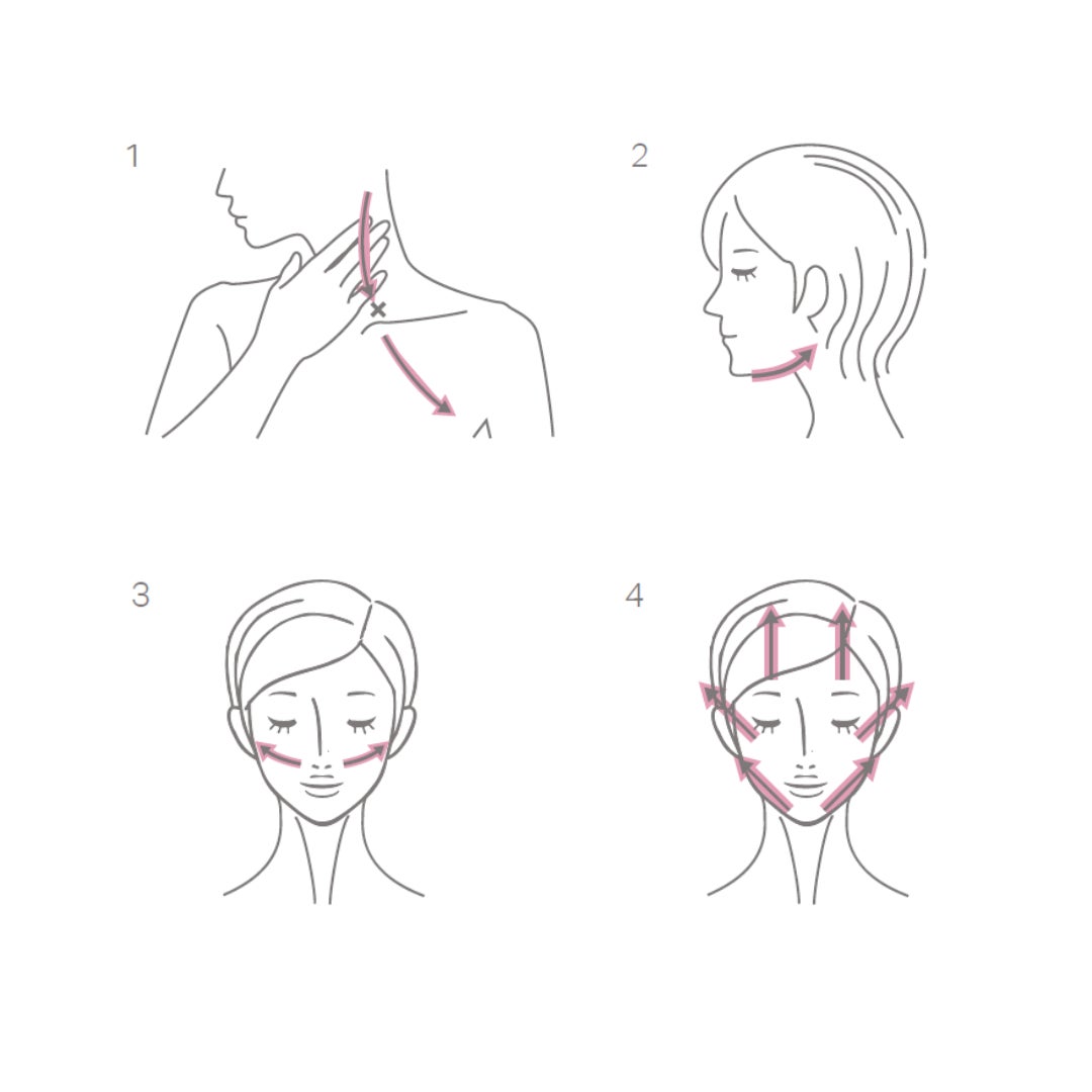 洗顔後に化粧水でお肌を整えたあと、デイリーケアの場合は3~5滴を手にとり、お顔全体に塗布します。ディープケアをする場合はスポイト2プッシュ分を手にとり、お顔やデコルテに良く馴染ませま す。