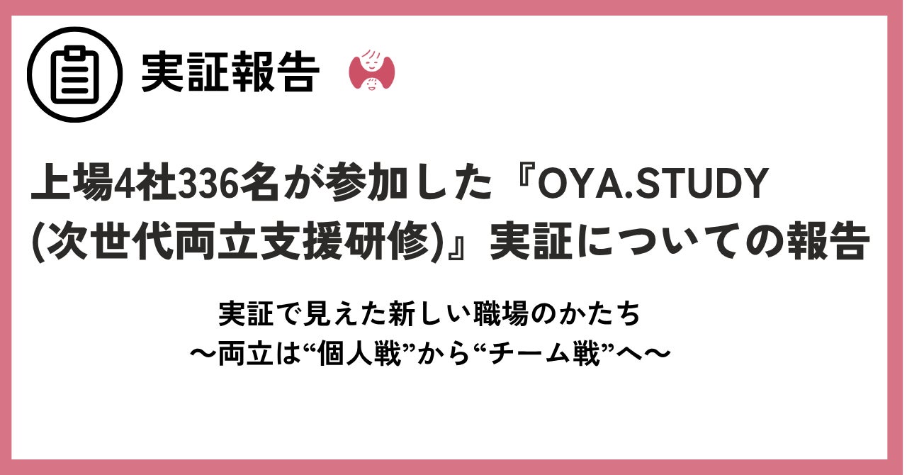両立は“個人戦”から“チーム戦”へ。上場4社336名が参加した『OYA.STUDY』実証で見えた新しい職場のかたち