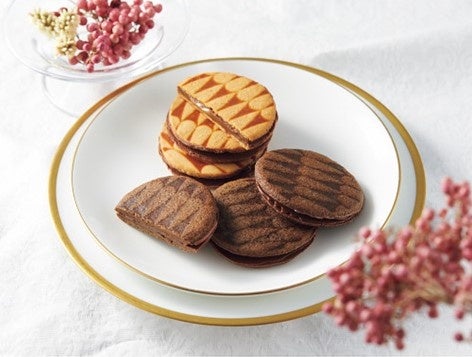 キャラメルを包んだチョコレートをコクのあるサクサクのクッキー生地でサンドしたキャラメルサンドクッキー。定番のオリジナルと、ほろ苦なコーヒーフレーバー入りの2種を展開。1枚でしっかり食べ応えがあるのに、ついつい、もう一枚、と手がのびるおいしさで、自分へのご褒美だけでなく、大切な方への贈り物にもぴったりです。