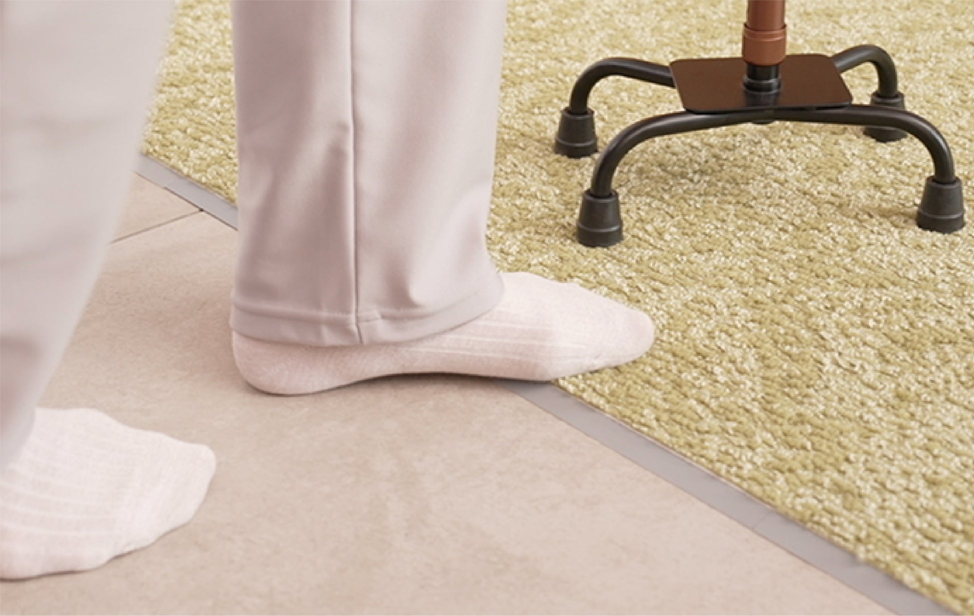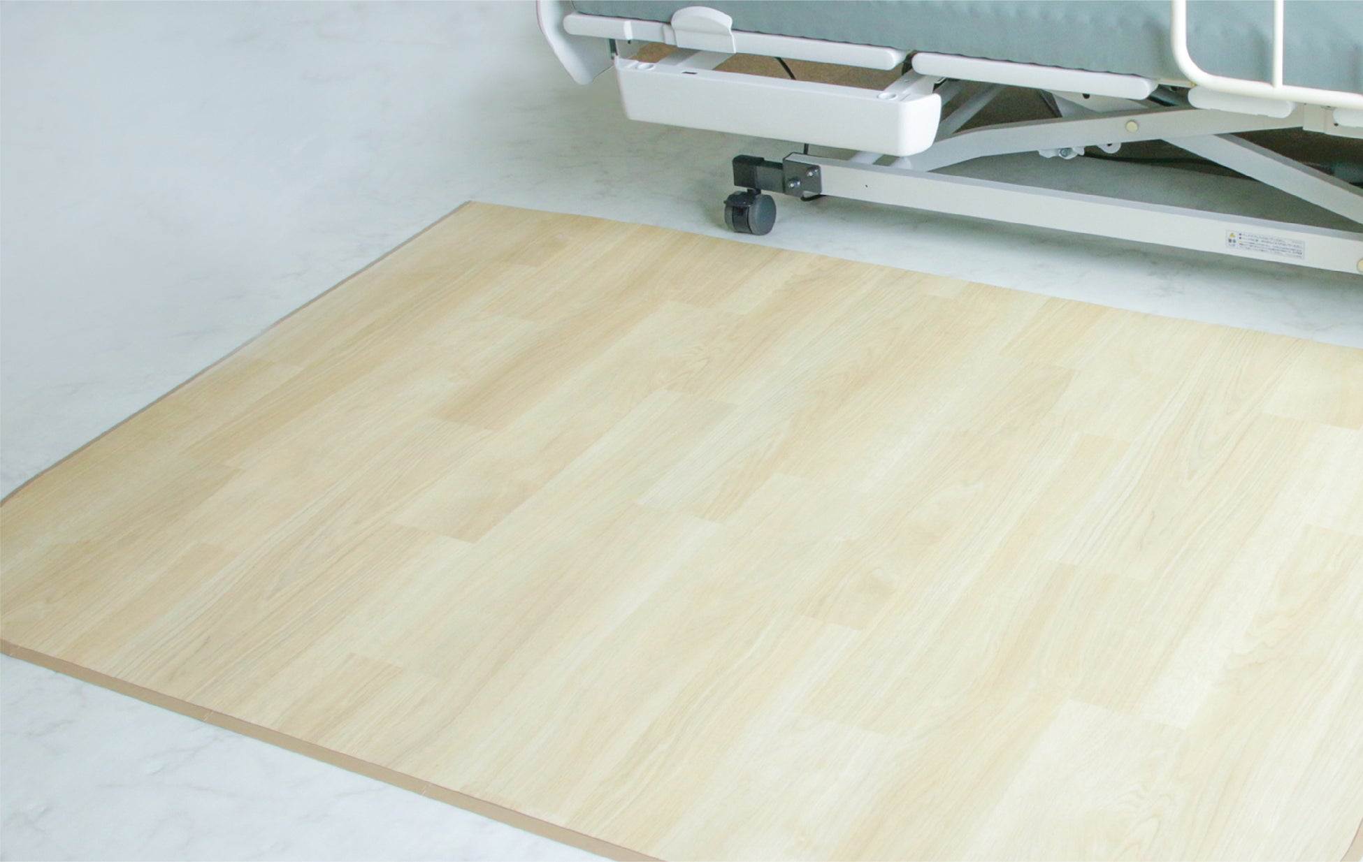 転んだときには床面が凹み骨折などのけがを減らしますが、普段は固いため、快適に歩くことができます。
