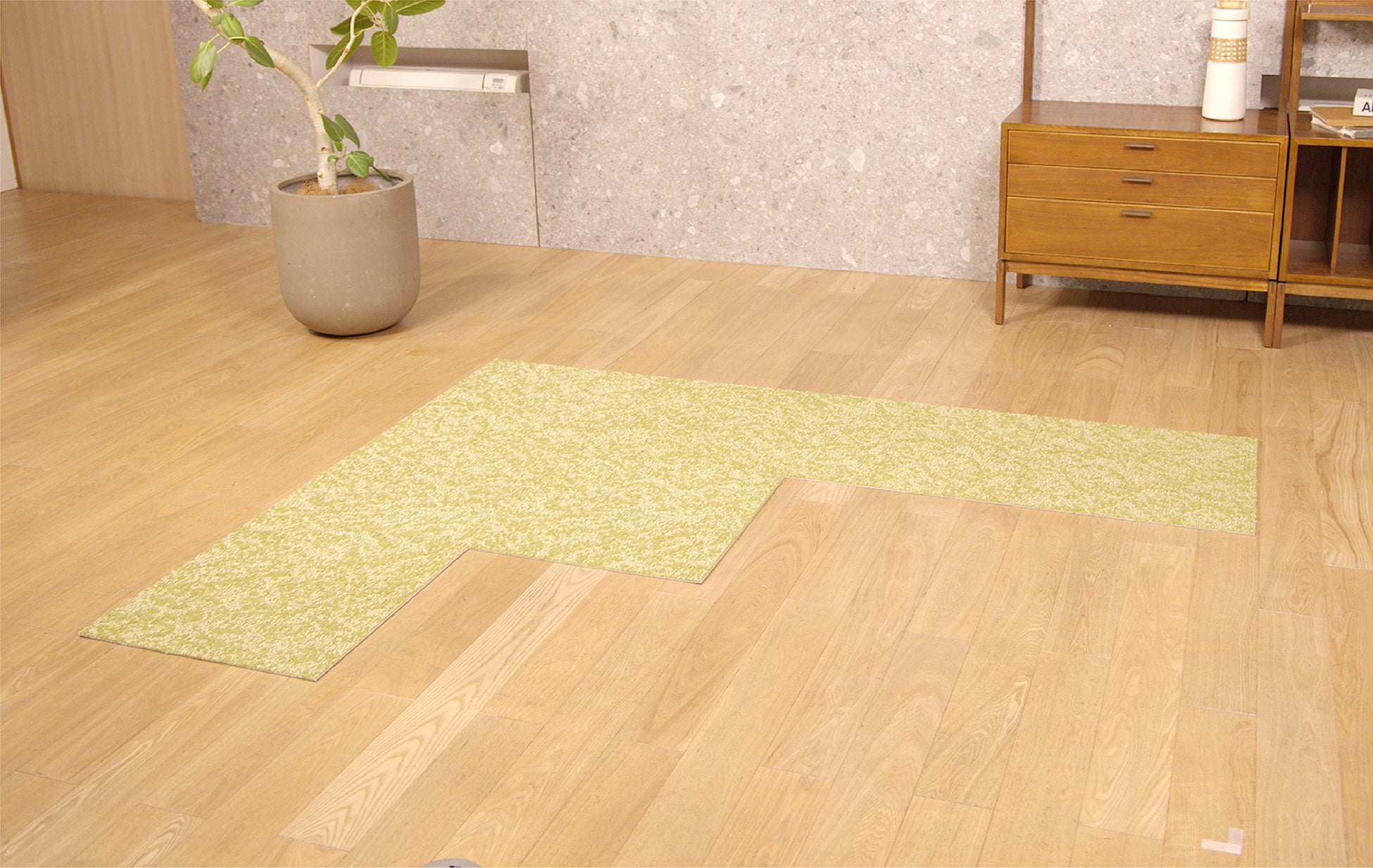 冬でも足裏が冷えにくく、インテリアにもなじんで美しくて気持ちの良い手触りのカーペットタイプと、液体などの汚れがしみ込まず、お掃除も簡単なビニールシートタイプの2種類から素材を選ぶことができます。