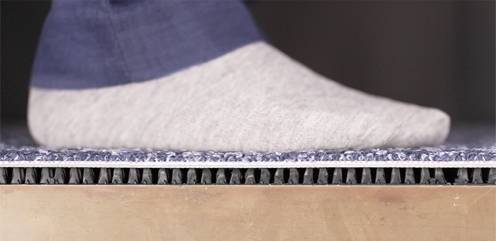 Magic Shieldsの特許技術※を用いた「可変剛性構造体」を搭載し、約1cmの薄さで緩衝マットとして、優れた衝撃吸収力を実現しました。