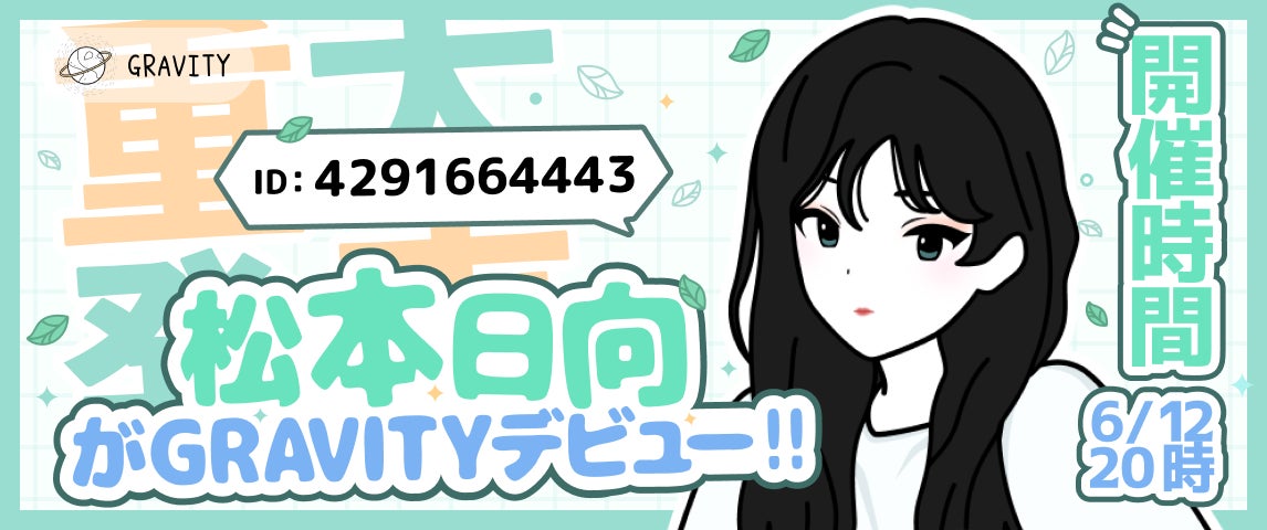 GRAVITYを盛り上げている、声とチャットで交流できる「音声ルーム」に、人気のタレント松本日向が登場します。日常の過ごし方やここでしか聞けない話など音声ルームでどのようなトークが繰り広げられるのか!?トークを見逃さないよう、事前にSNSアプリ「GRAVITY」をダウンロードして当日音声ルームでのリアル生配信をお楽しみください。