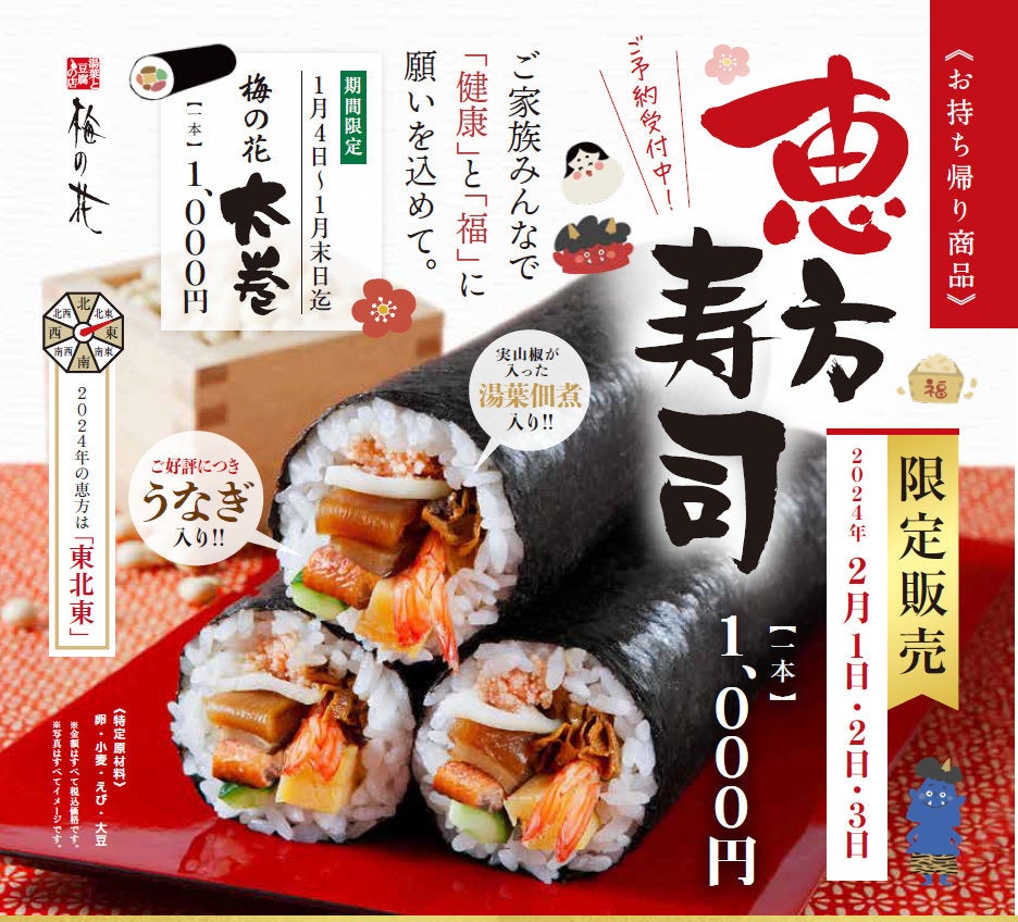 ご家族で、職場でも「健康」と「福」に願いを込めて、2024年も恵方を向いて丸かぶり!