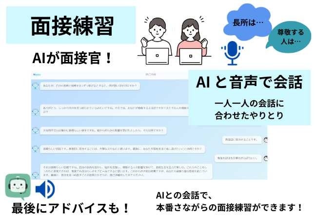 スクールAIを基盤とした面接サービスで、本番の面接同様に音声でのやりとりができます。