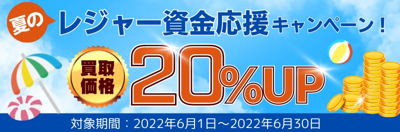 買取専門店ウリエルでは、6月30日まで不要品の買取価格が20%UPする「夏のレジャー資金応援キャンペーン」を実施中です。