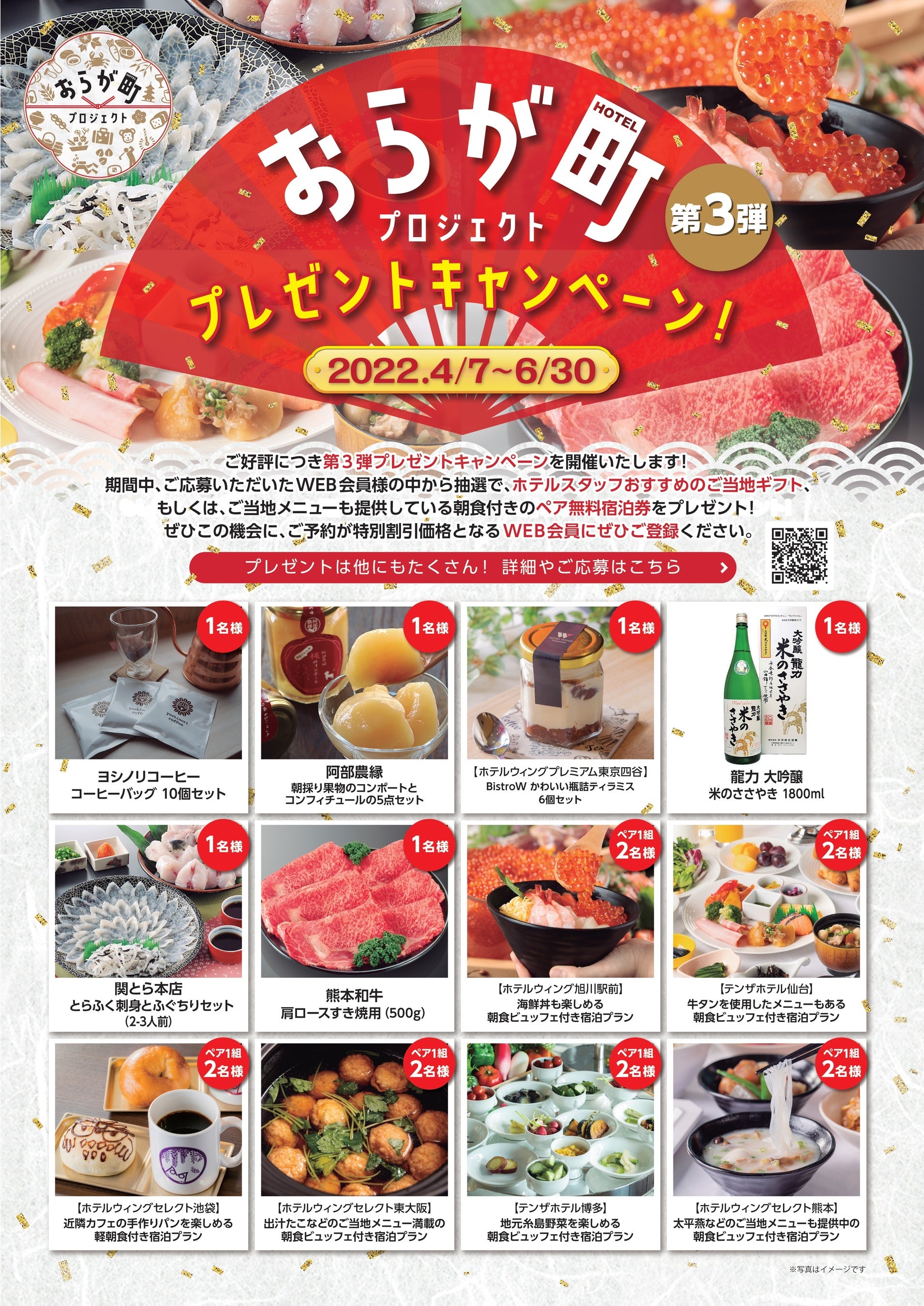 ホテルを基軸に地域の食や観光資源の魅力を発信する「おらが町プロジェクト」。朝食付き宿泊券やご当地グルメが当たるプレゼントキャンペーン 4月7日スタート!