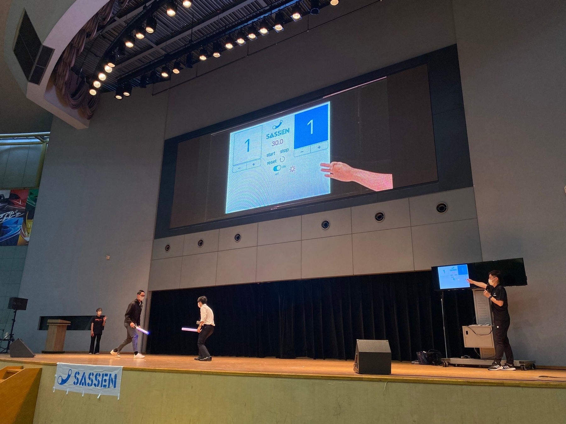 試合で使用する「SASSEN刀(とう)」には圧力センサーや加速度センサー類が装備されており、スマホアプリとBluetoothで連動している。