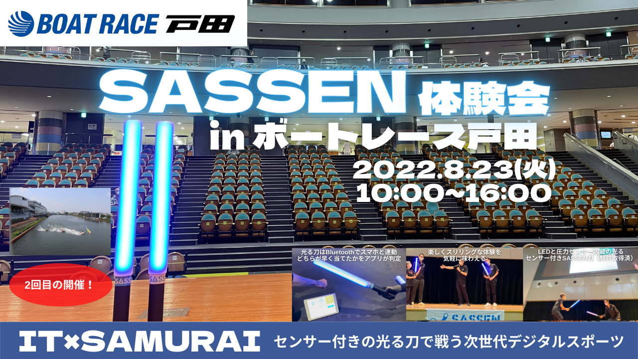 【ボートレース場でチャンバラ体験!】次世代デジタルチャンバラ(SASSEN/サッセン)体験イベントをボートレース戸田(埼玉県戸田市)にて開催!