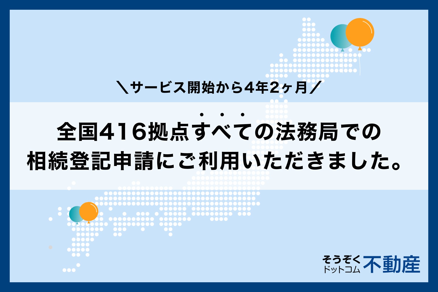 AGE technologiesが運営する「そうぞくドットコム」、全国416拠点すべての法務局での相続登記申請にご利用いただきました。