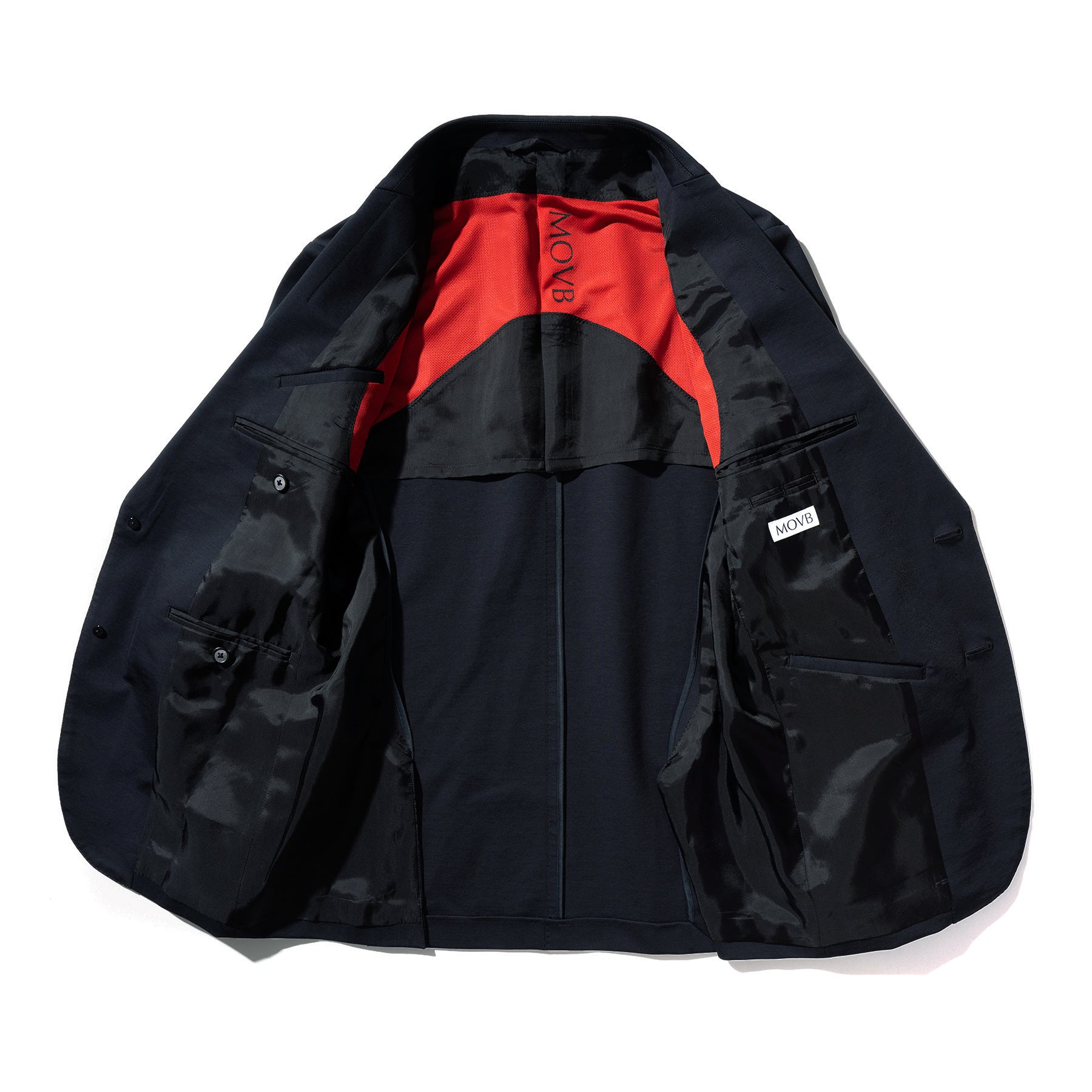 なお、全てのアウターには、MOVB独自の裏地機構「Moving仕様」を採用しています。人間工学の観点からも考慮した裏地で、肩甲骨から肩周りに特殊なメッシュ素材が、身体の動きに合わせて追従するため、突っ張り感のない快適な着心地を生み出します。