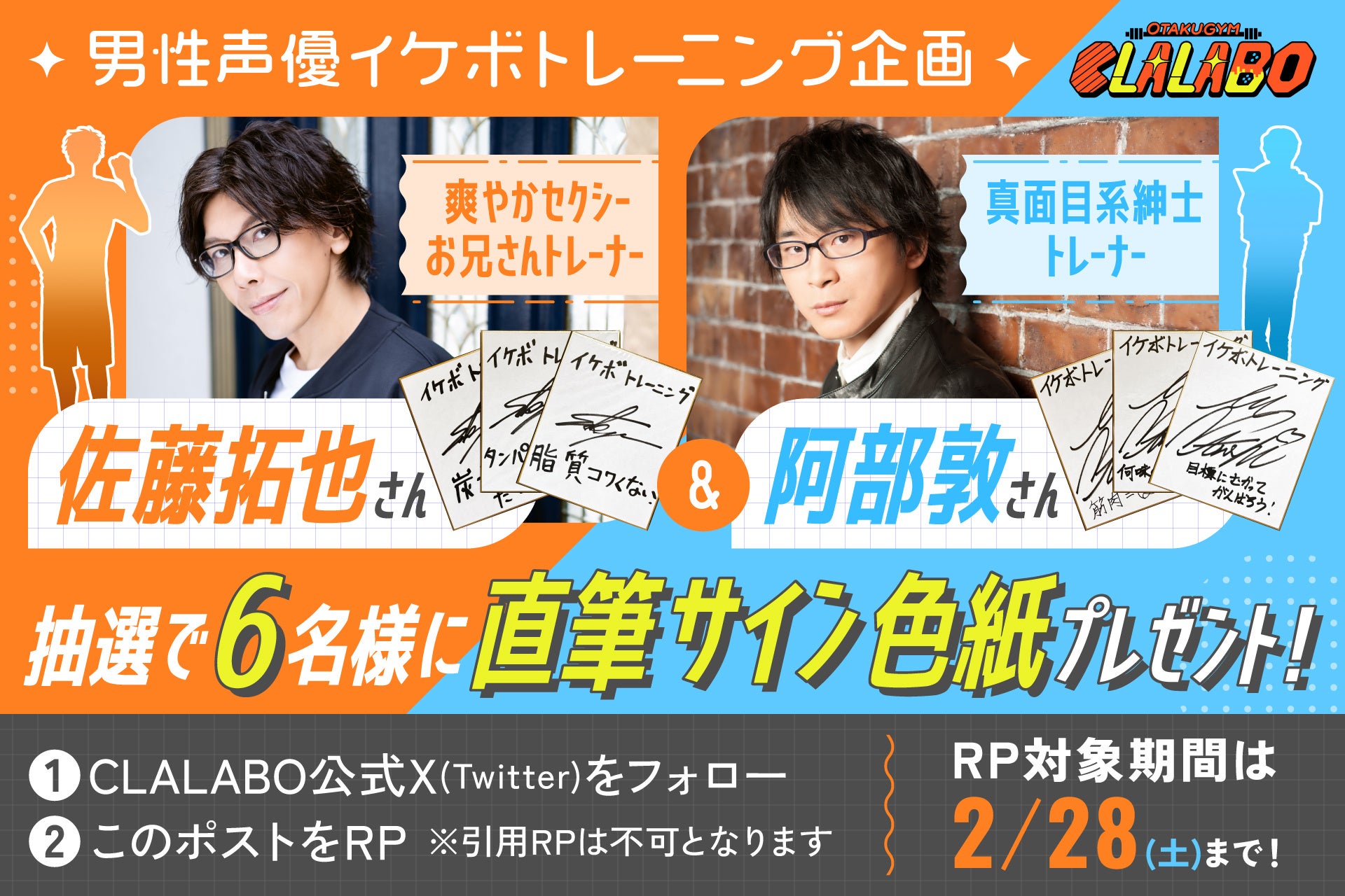 また、オタクジムCLALABO会員様用にも感謝を込めて、佐藤拓也さん&阿部敦さんの直筆サイン色紙プレゼントキャンペーンも実施中です。