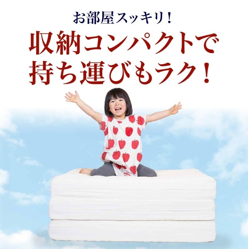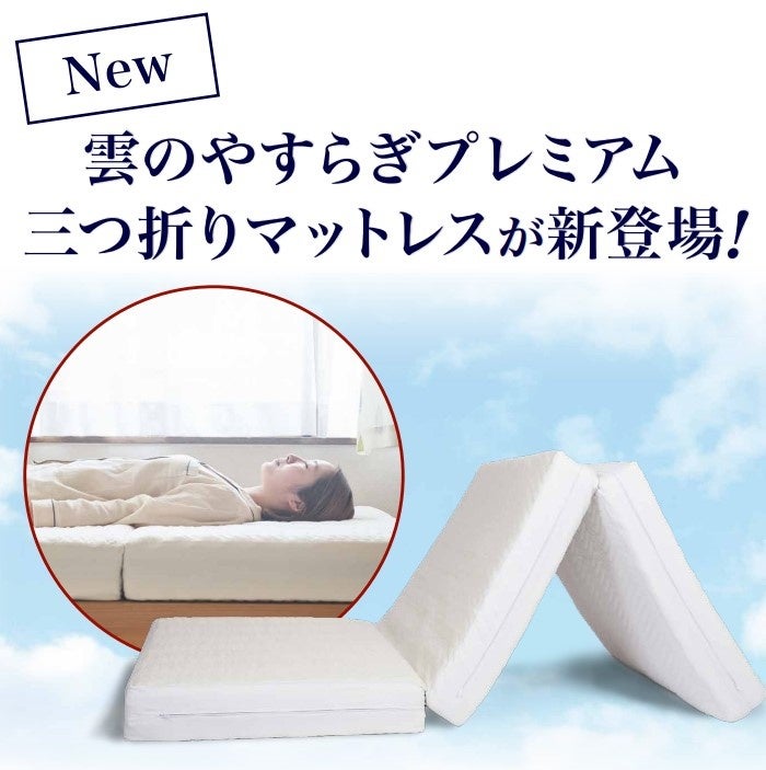 “まるで雲の上の寝心地”SNSでも人気沸騰中!大人気寝具ブランド「雲のやすらぎ」が持ち運び簡単な「三つ折りマットレス」4月26日(火)より販売開始。