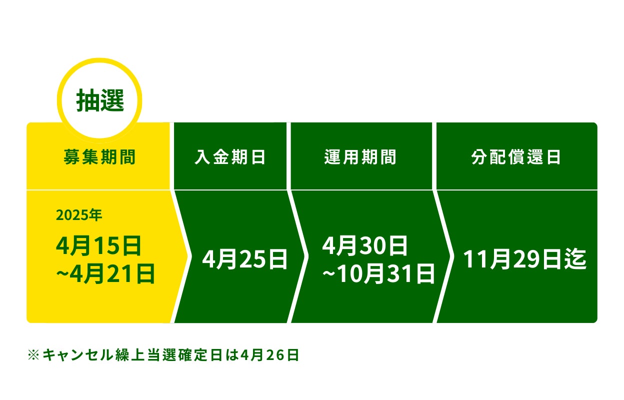 前回ファンドへの申し込み金額を超える金額での申し込みは自動的に落選となりますので、ご注意の上、ご了承いただけると幸いです。
