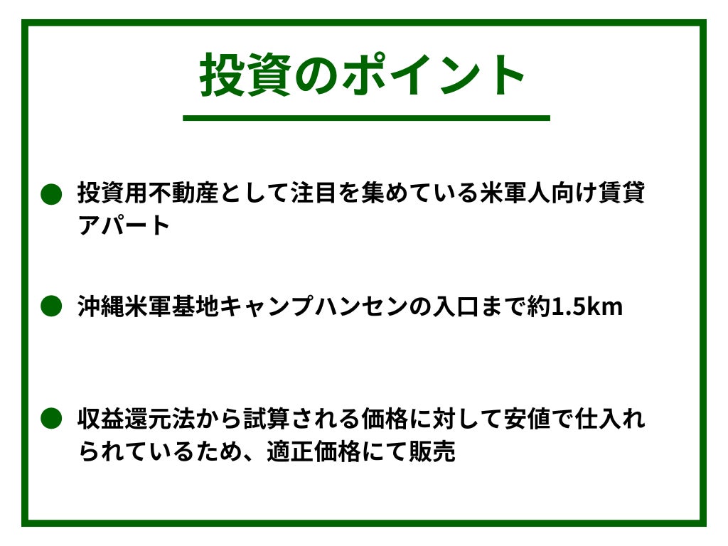 ~投資用不動産として注目を集めている米軍人向け賃貸アパート~