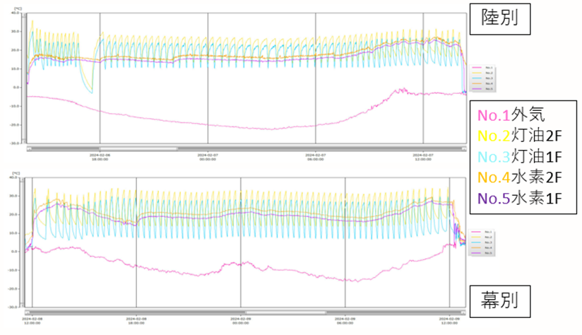陸別町で24時間、囲い内温度10℃以上の維持を達成することに成功しました。また、囲い内での水素滞留は見られず、安全性についても実証することができました。