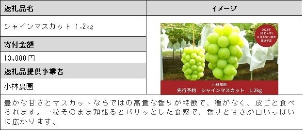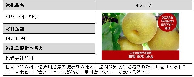 新潟県三条市(市長:滝沢 亮)では、シャインマスカット、桃、梨、ル レクチェなど4事業所合わせて38返礼品の先行予約を数量限定でスタートさせました。