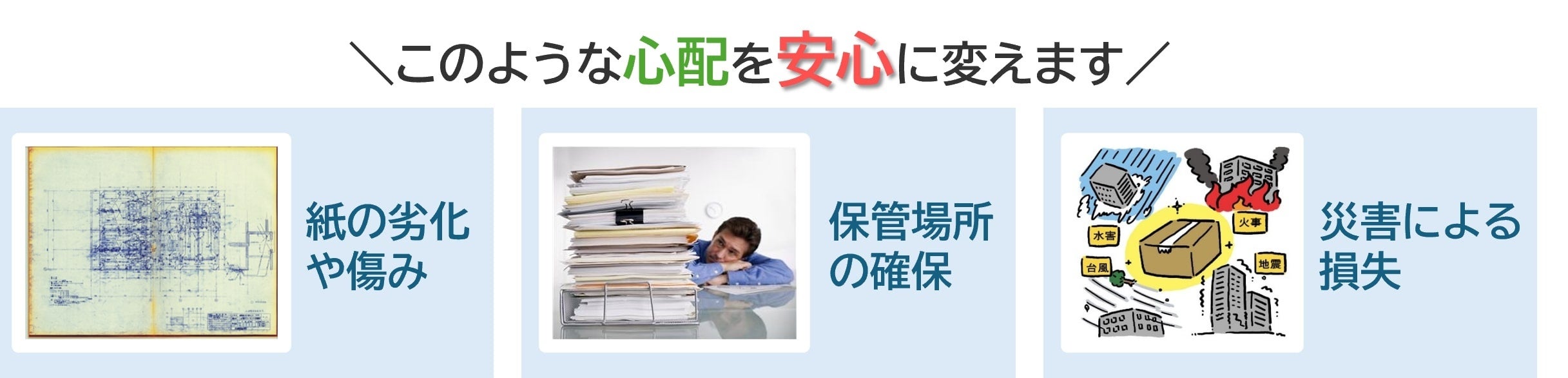 「スキャニングサービス」とは、お客様の社内で保管している紙図面・紙書類等の文書をデータ化するサービスです。電子帳簿保存法の改正に伴い、急速に需要が増加しています。