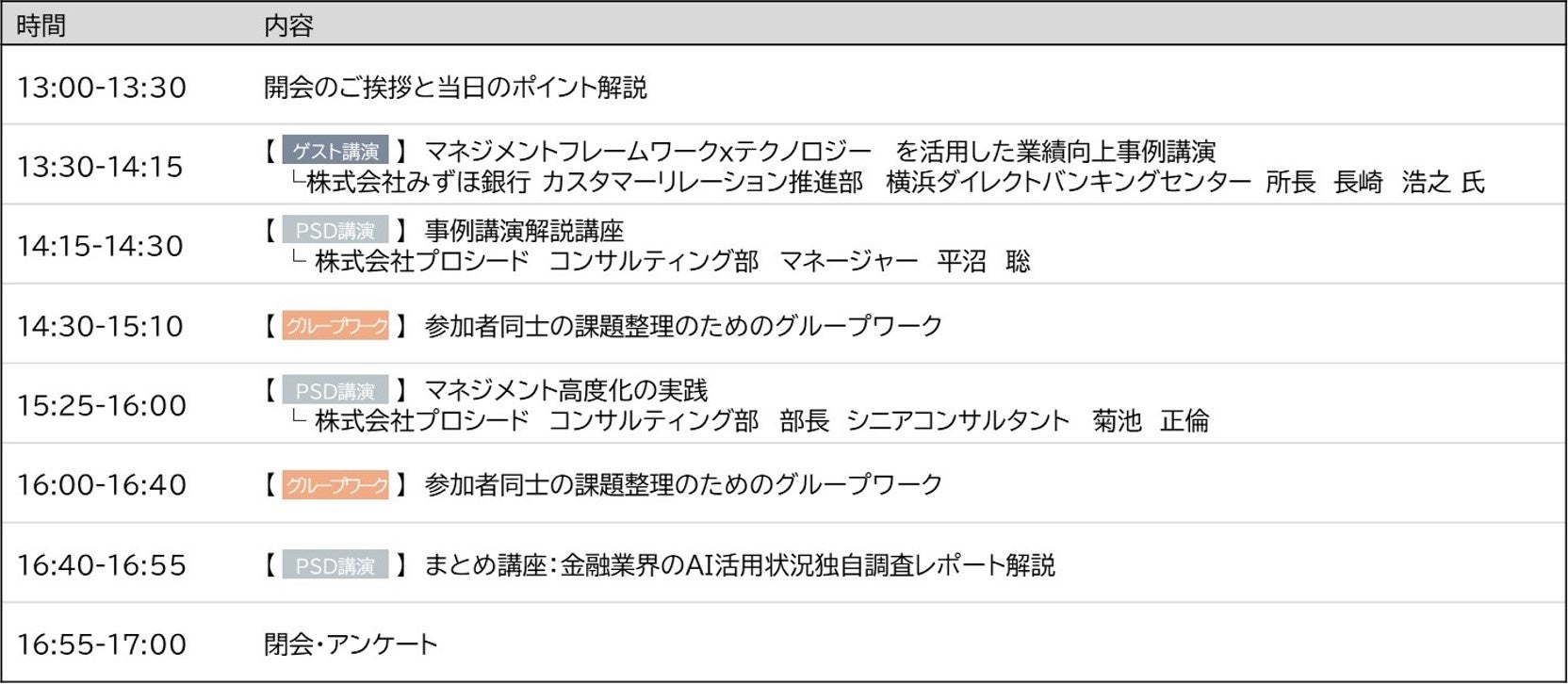 当日は、株式会社みずほ銀行 カスタマーリレーション推進部 横浜ダイレクトバンキングセンター 所長の長崎 浩之 氏による「マネジメントフレームワーク×テクノロジーを活用した業績向上事例講演」を基調講演として、参加者同士のグループワークを行いました。