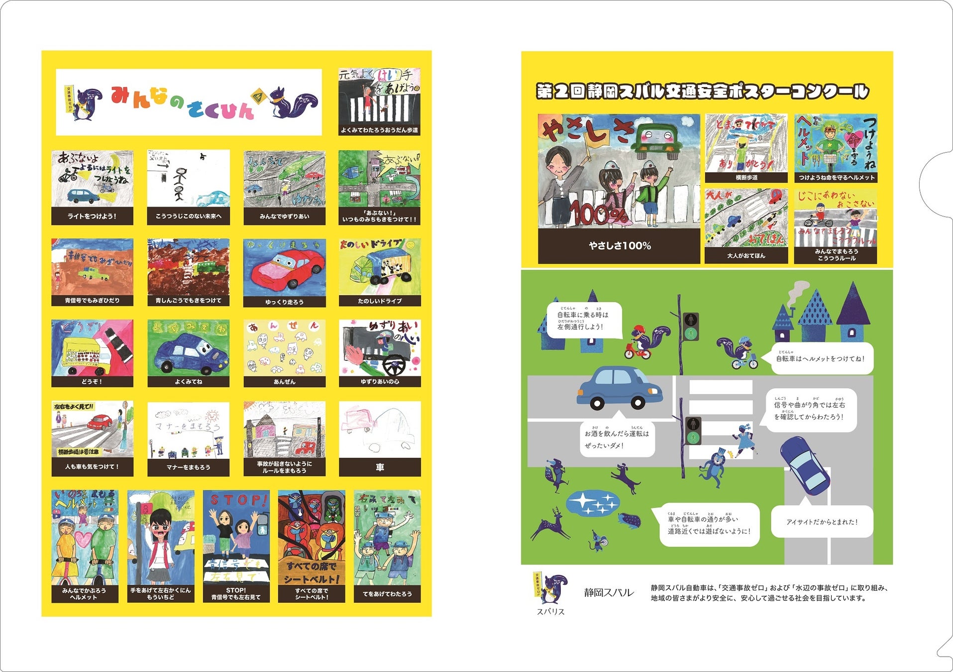 今回のコンクールを通じて、交通安全の意識をさらに高めるため、参加賞として制作した特製クリアファイルを静岡スバルグループ全社員に配布します。また、SUBARU車の安全性能や当社の交通安全への取り組みをまとめたリーフレットも同時に配布し、社員一人ひとりが交通安全の重要性を再認識する機会とします。当社は、社員と共に「交通事故ゼロ」の社会づくりに取り組んでいきます。