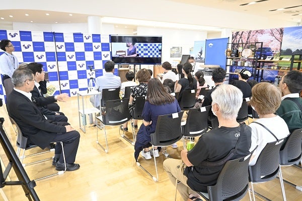 9月14日(土)14時半、会場となった静岡スバル清水店には、最優秀賞を受賞した犬飼すず那さん(浜松市在住)ご一家をはじめ、静岡県内各地から受賞者とそのご家族、また、シンガポールから1組オンラインで、総勢22名が参加しました。表彰式は和やかな雰囲気でスタートし、受賞者は名前を呼ばれると元気よく「はい!」と返事をして前方に進み、賞状と副賞として目録と特製クリアファイルを受け取りました。賞状と作品を持っての記念撮影では、ご家族と共に笑顔あふれる場面が多く、オンライン参加の受賞者とご家族は画面越しとなりましたが、受賞者と共に喜びを祝う表彰式となりました。