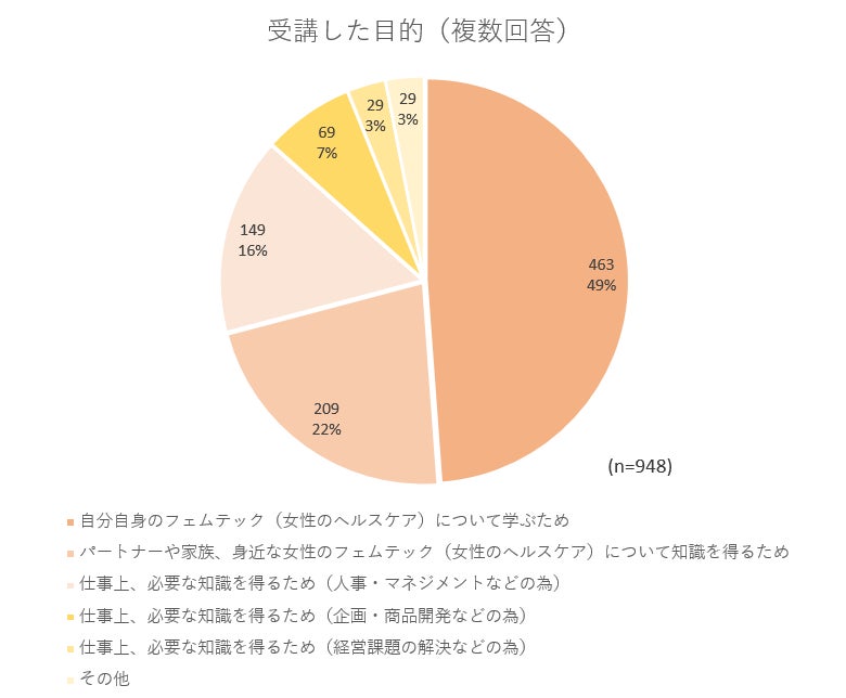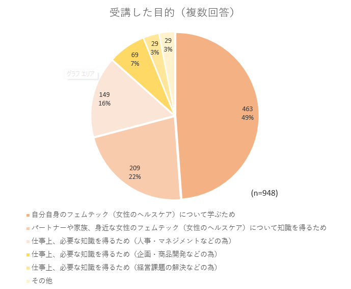 「フェムテックが経済に与えることやヘルスリテラシーが高いと生産性が向上すると聞き、受講してみました。内容はやや難しく感じましたが、女性のヘルスケアについて学べ、満足しました」(百貨店・小売/20代男性)