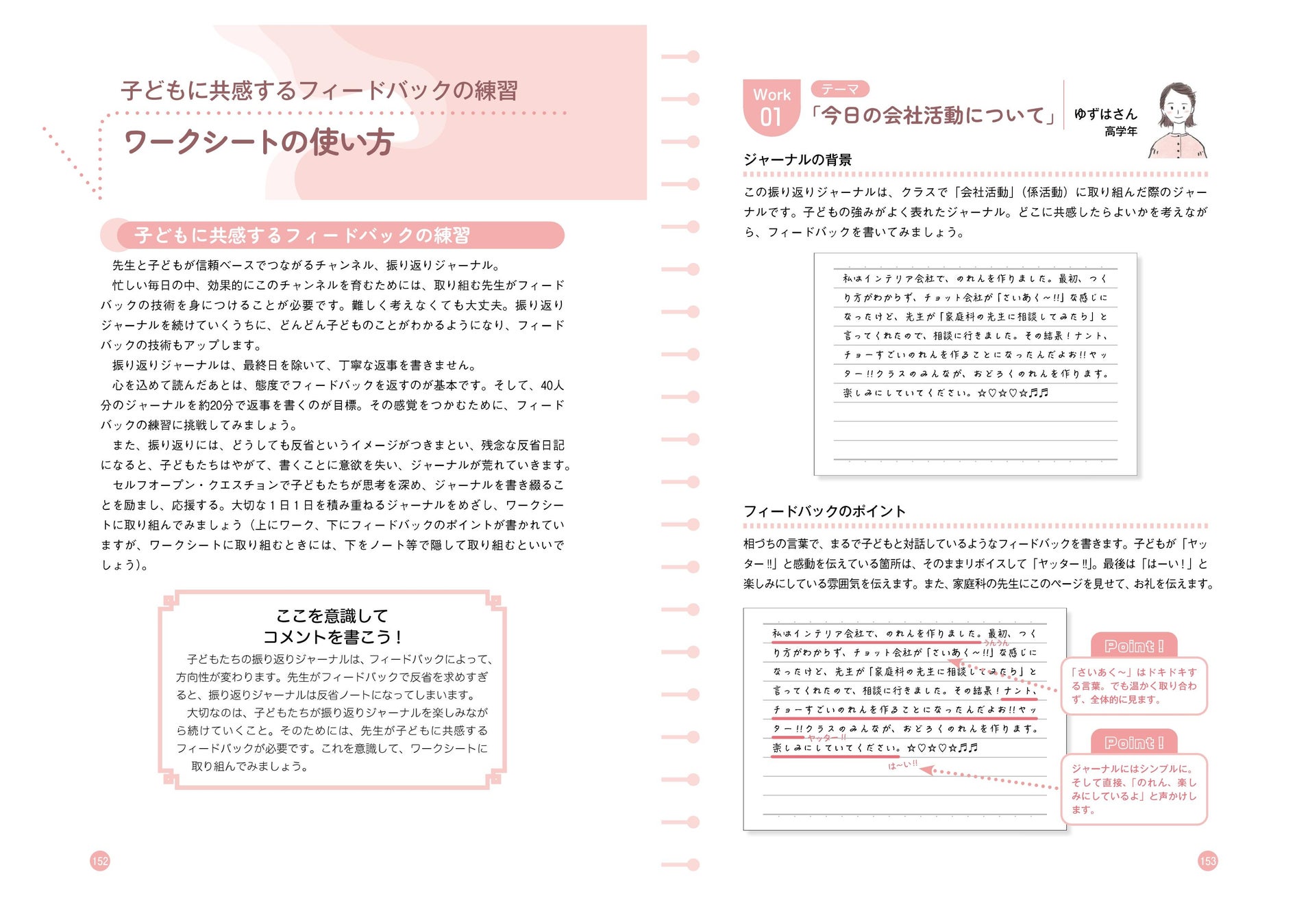 また、巻末特典として、振り返りジャーナルのフィードバックの書き方を見本を使いながら紹介。