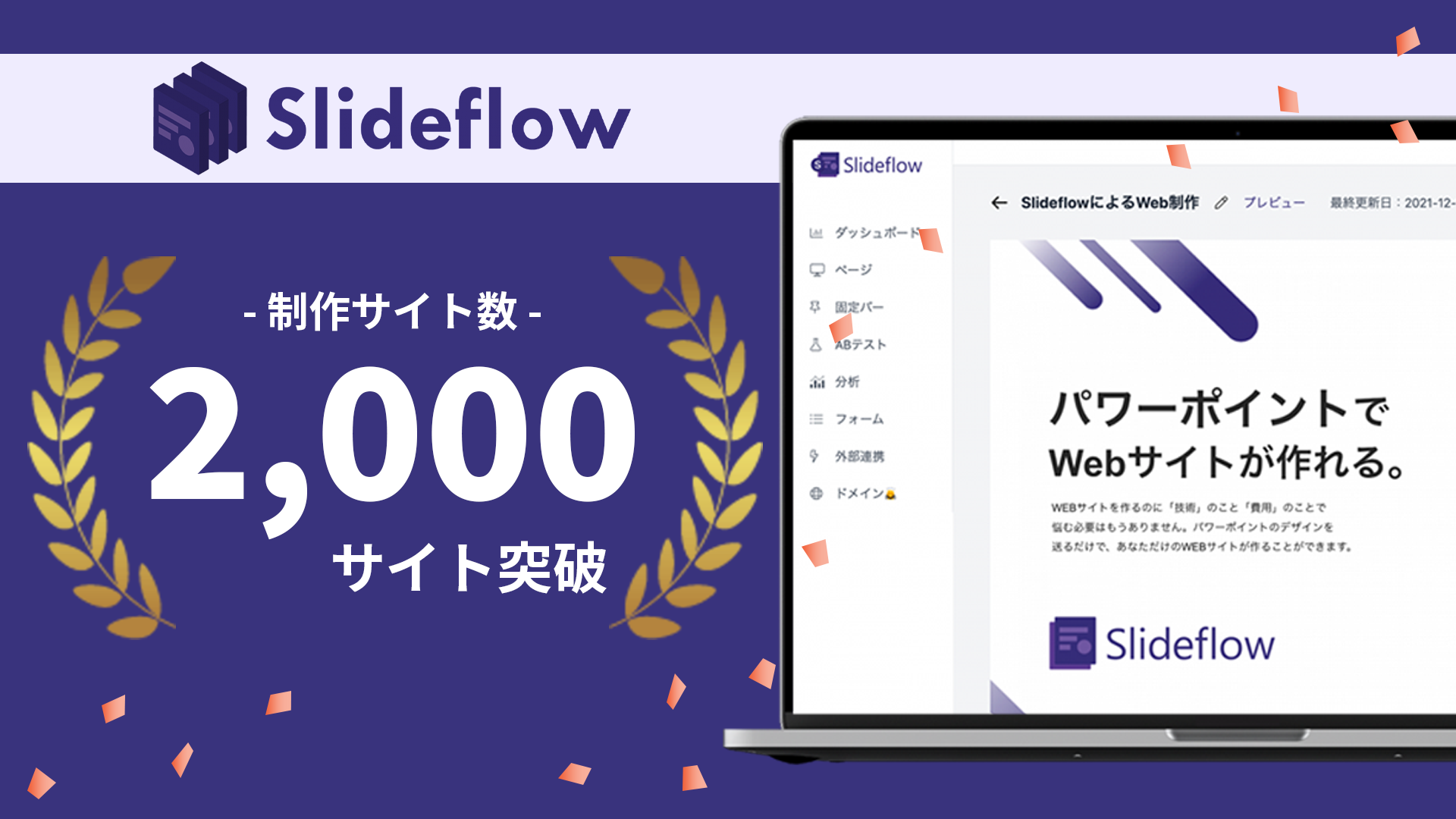 パワポでWebサイトが作れる「Slideflow」を利用したサイトが 2,000 サイトを突破!