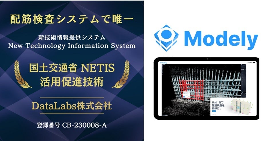 DataLabs株式会社(本社:東京都中央区、代表取締役:田尻大介、以下DataLabs)は、提供する3次元配筋検査システム「Modely(モデリー)」が、国土交通大臣表彰制度において「活用促進技術」に選定されたことをお知らせいたします。