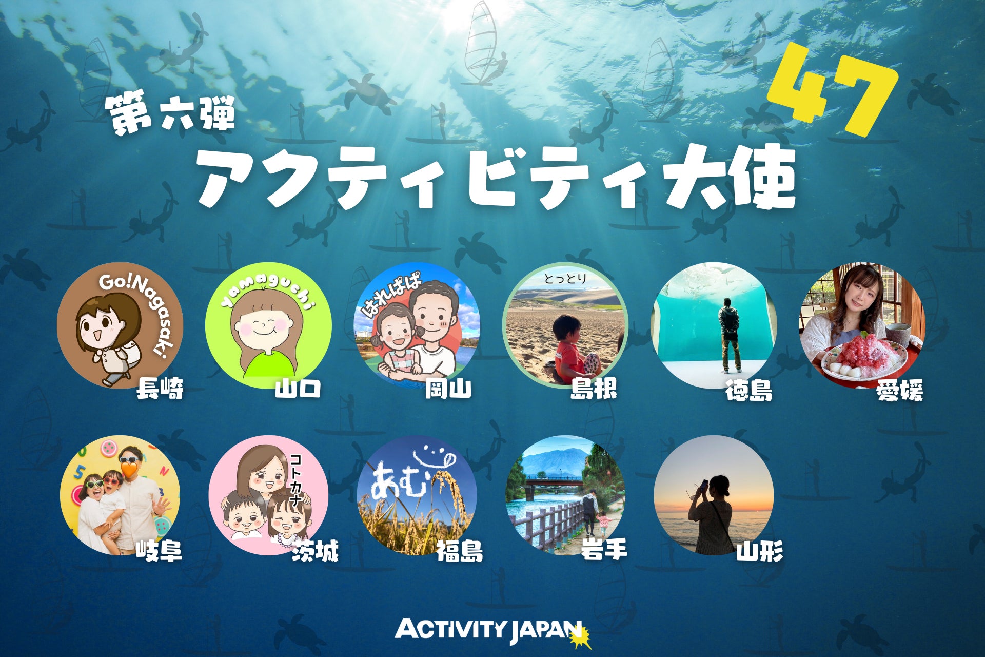 日本最大級の国内アクティビティ予約サイトを運営する株式会社アクティビティジャパン(KKdayグループ、本社:東京都新宿区、以下 アクティビティジャパン)は、この度、山形県、岩手県、福島県、茨城県、岐阜県、島根県(鳥取県兼任)、岡山県、山口県、愛媛県、徳島県、長崎県の11名のアクティビティ大使を新たに任命しました。