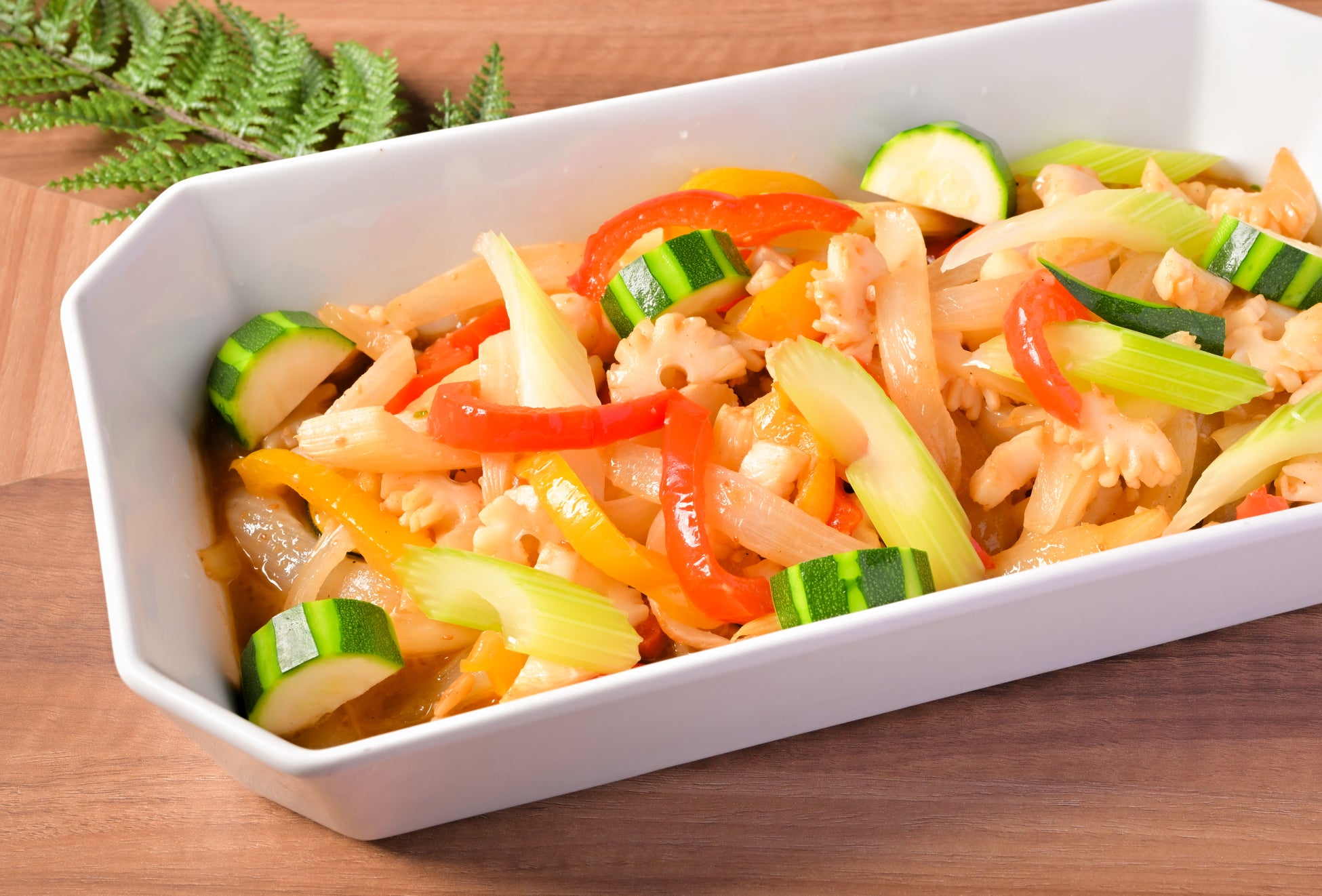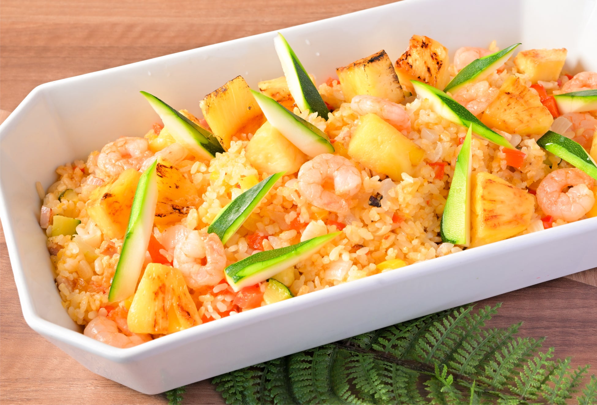 ふっくらと炊き上がったピラフに、ごろっとしたパイナップルの果肉が溶け込んだ、甘酸っぱさとフルーティーな香りがポイントの南国気分を味わえる一品です。