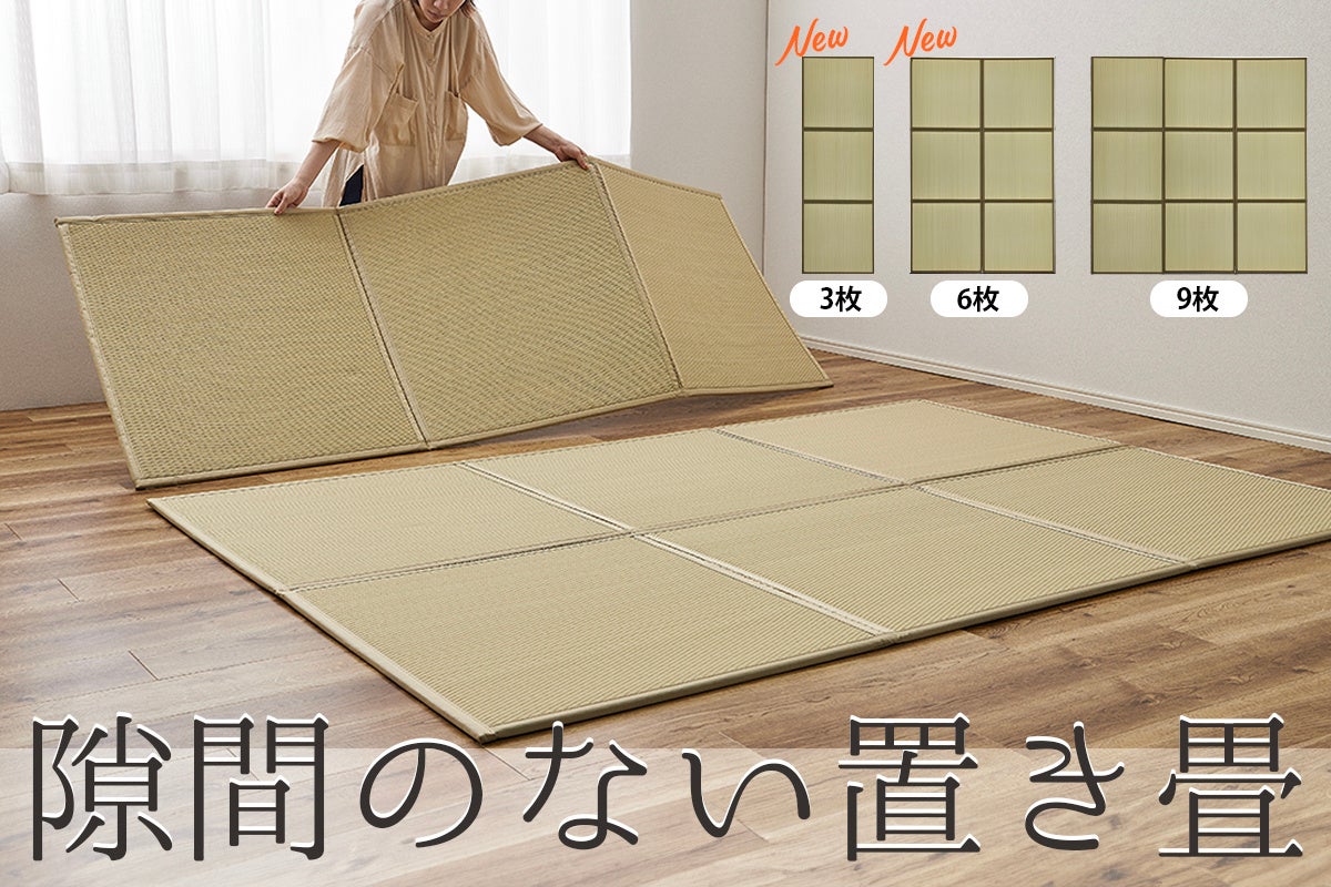 創業以来132年い草製品を提供しているインテリアメーカー・萩原株式会社(本社:岡山県倉敷市)は、2024年8月末より、連結していてズレない「隙間のない置き畳」の新サイズを当社ECサイトにて販売開始いたします。