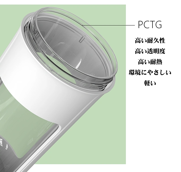 PCTGは、高い透明度を誇り、化学薬品に耐性があり、非常に強靭で、環境にやさしい素材です。PCTGは高い耐熱性を持ち、再利用が可能で、一般的なプラスチックよりも耐久性に優れているため、長期間安心して使用できます。このような魅力的な特性を持つPCTGは、持続可能なライフスタイルを実現する上で、優れた素材となります。