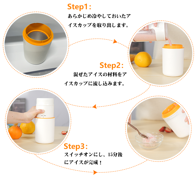 操作簡単!自動洗浄!2回押し、15秒だけジュース完成!15分間だけアイスクリーム完成!繊細な食感、とろける口当たり!