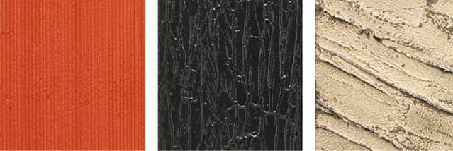 扉の装飾に合わせ、背板には異なる箔を用いています。「時跡 錆」には深みのある金箔4号、「時跡 黒」と「時跡 朱」には上品な輝きを放つプラチナ箔を採用。刷毛目の模様に施した箔が、空間に荘厳で趣き深い印象を与え、存在感を一層引き立てています。