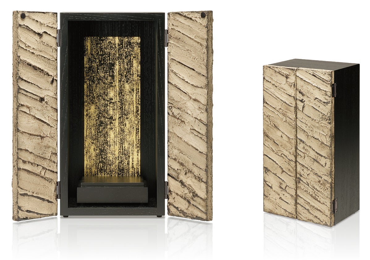 漆工芸の美を自社工場で研究、製品化。木漆工芸家・十時 啓悦氏に学んだ錆漆の厨子「時跡」を発表。