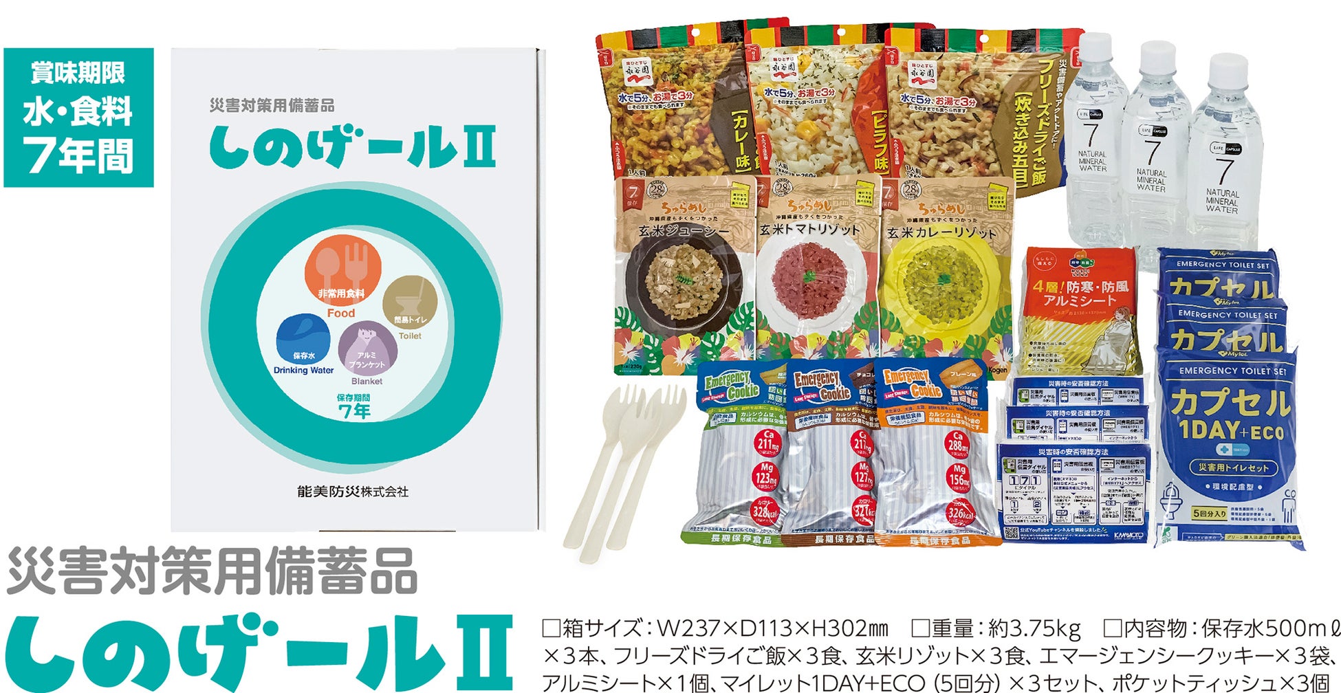 能美防災 災害対策備蓄品「しのげールⅡ」「しのげールワンⅡ」を販売開始