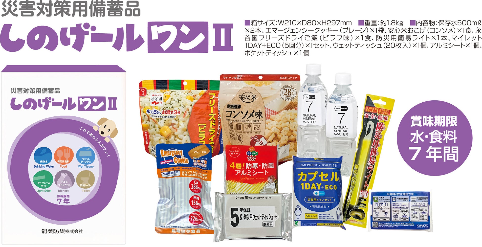 災害対策備蓄品「しのげールワンⅡ」:4,600 円(税抜)