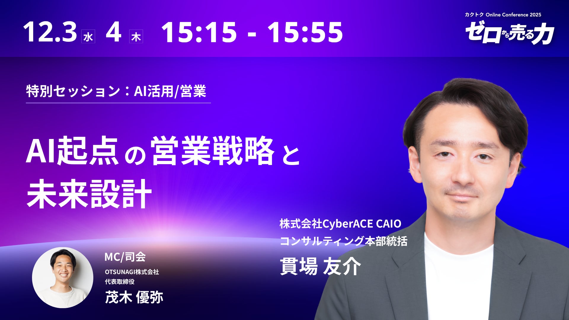 好評につきアーカイブ配信決定!【12月3日・4日 無料セミナー開催】営業×AIの最前線。CyberACEが語る「未来の営業戦略」|カクトク Online Conference 2025