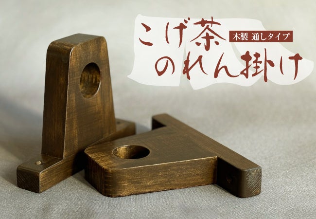 これまでご好評をいただいていた白木タイプ(無塗装)の「のれん掛け」に加え、新たに登場したのがこげ茶色の塗装タイプです。