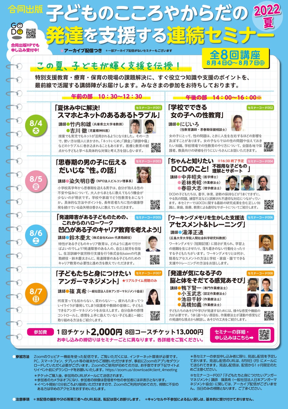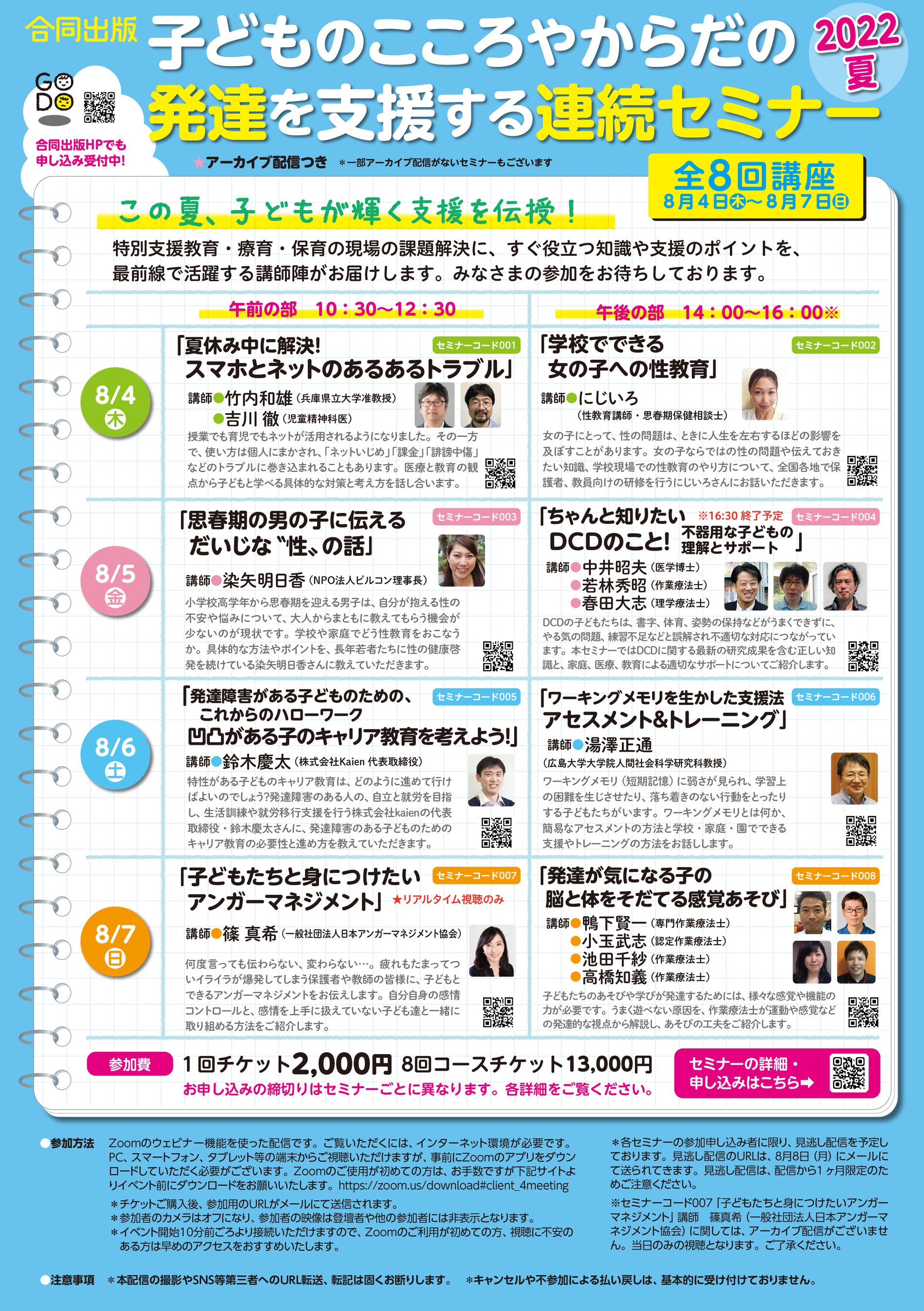 合同出版では「合同出版 子どものこころやからだの発達を支援する 連続セミナー2022夏」を2022年8月4日(木)〜8月7日(日)に開催いたします。