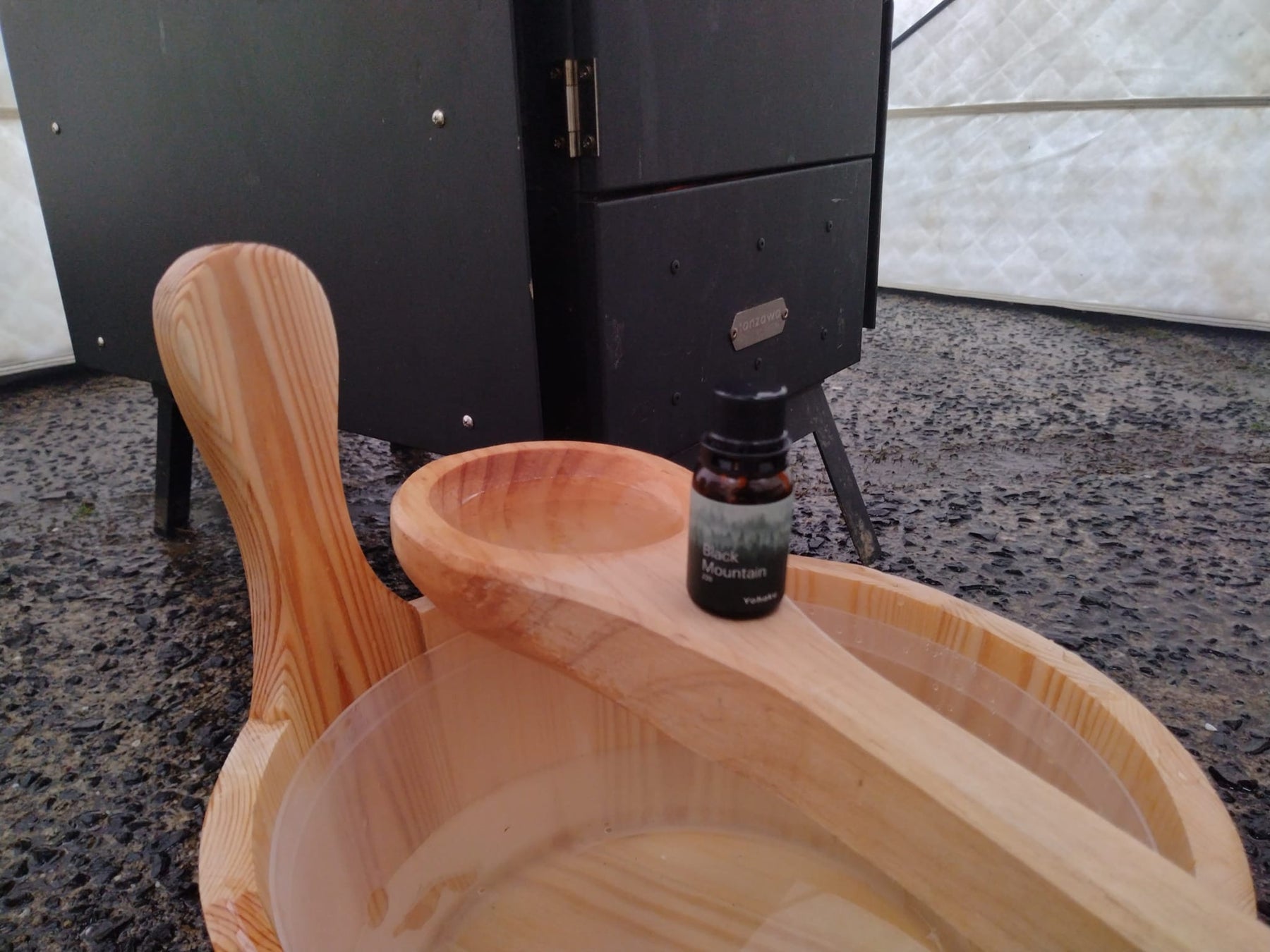 解放感溢れる自然の中に立つプライベートテント内では、自然と調和するサウナドロップをグループごとに愉しむことができます。