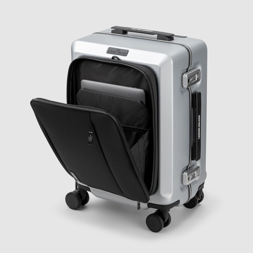 スーツケースのフロント部分に、マグネットバックルで簡単に着脱できる専用PCバッグ付き。必要なときだけ、スマートに持ち運べる新発想。13インチまでのノートPCやタブレット、A4ファイル、小物などの収納が可能です。ポリウレタン素材と止水ファスナーで水濡れに強く、内部にはPC専用スペースと小物収納ポケットを配置。
