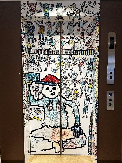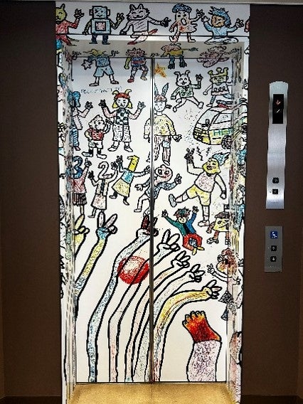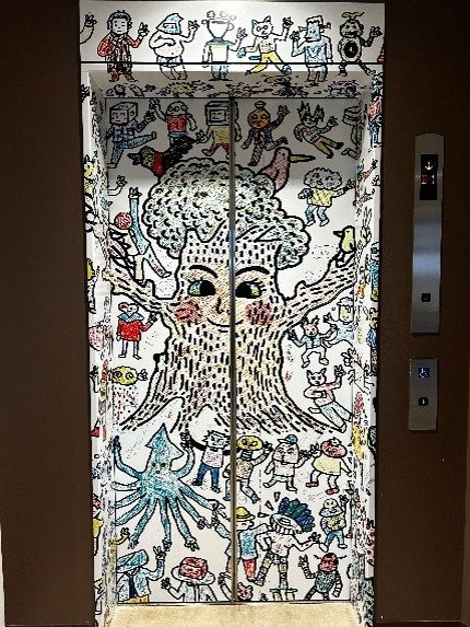 ITOCHU SDGs STUDIO施設内で「異彩の軌跡展 with ヘラルボニー」のエレベーターラッピング設置
