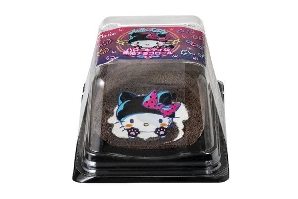 【商品特長】黒猫に仮装したハローキティがチャーミングな、みんなでシェアできるロールケーキです。やさしい甘さのチョコレートスポンジで、真っ白なホイップクリームを巻きました。