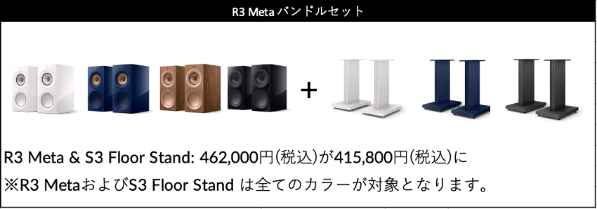 中型のパッシブスピーカーR3 Metaに専用スタンドS3 Floor Standがついたバンドルセット。