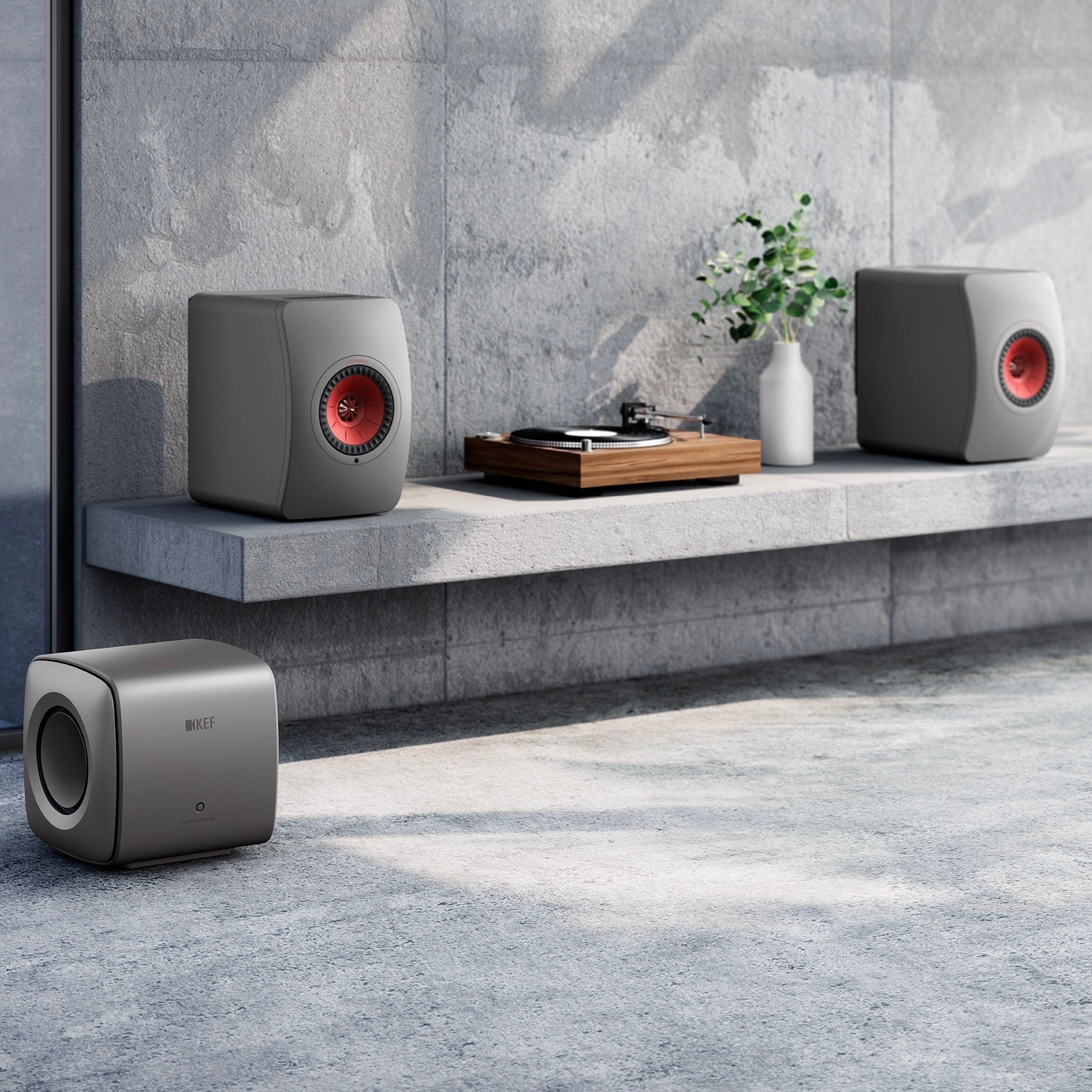 中型のワイヤレスHiFiスピーカーLS50 Wireless IIにサブウーファー KC62がついたバンドルセット。KEFの伝統的なブックシェルフ型スピーカーの特徴・機能を継承しているLS50 Wireless IIの透明感のある自然なサウンドに加え、ディープで息を呑むような低音が特徴のサブウーファーKC62で迫力のある音楽、映画、ゲーム体験が楽しめます。