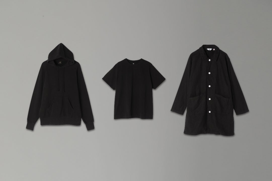 それぞれが100年以上の歴史ある背景を持ち、頑なにオンリーワンを追求してきた日本のものづくりがタッグを組みました。「京都紋付」独自の深黒加工(シンクロ加工)技術による“究極の黒”を纏ったウェアとのMADE IN JAPANのコラボレーションコレクションは、実際にお手に取ってご覧いただきたい逸品です。