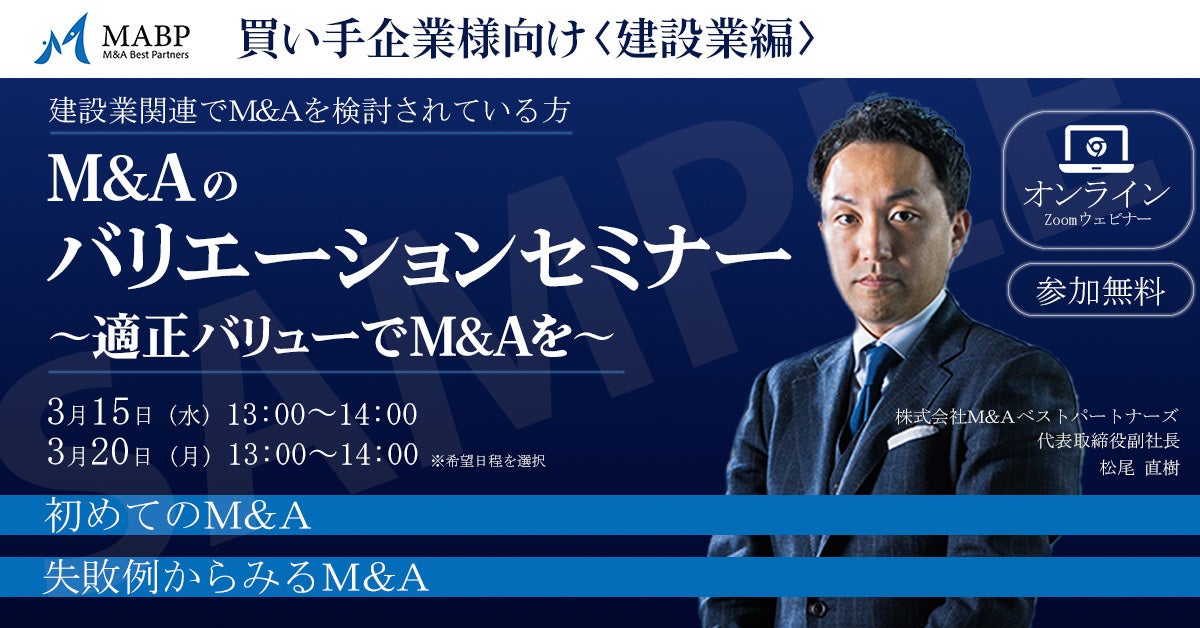 【M&Aベストパートナーズ】3/15(水)、3/20(月)に買い手企業様向け「ケーススタディから学ぶM&Aの入門セミナー」を開催!